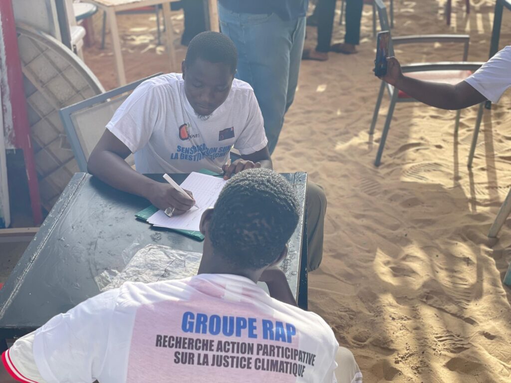 « Dans le prolongement de la mise en œuvre de leurs activités planifiées, le groupe de recherche action participative sur la justice climatique a investi le 28 Septembre la plage de Malika noire de monde (week-end) pour une campagne de sensibilisation de masse contre les déchets plastiques. Avec des membres de l’Association des Jeunes Catholiques du Sénégal (AJCS), de volontaires et la présence remarquée de « Monsieur Plastique », les jeunes ont « parlé avec les gens » sur les dangers du plastique, les changements climatiques et ses effets. » 1